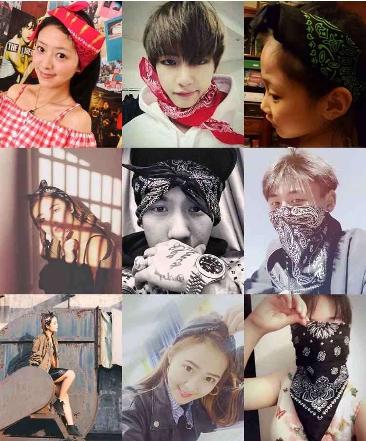 Nouvelle mode Hip Hop 100% coton Bandana carré écharpe 55 cm * 55 cm noir rouge Paisley bandeau imprimé pour femmes/hommes/garçons/filles