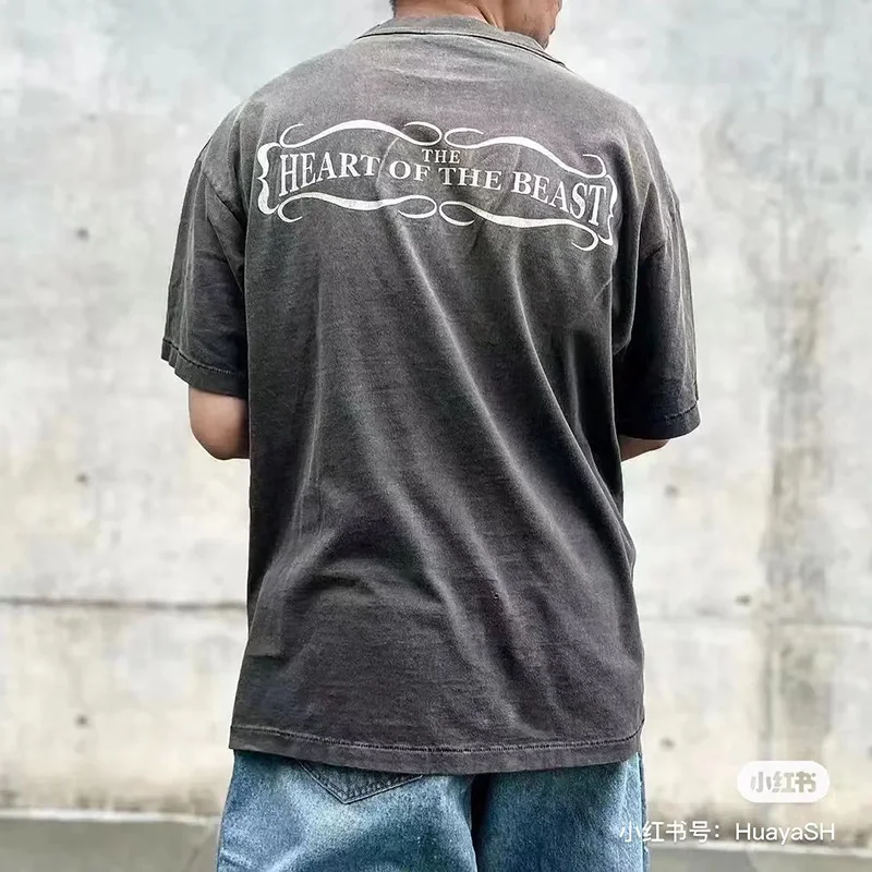 Vintage Series Saint Round Neck Sexy Robot Printed Casual High Quality Oversized T Shirt Harajuku Streetwear Men